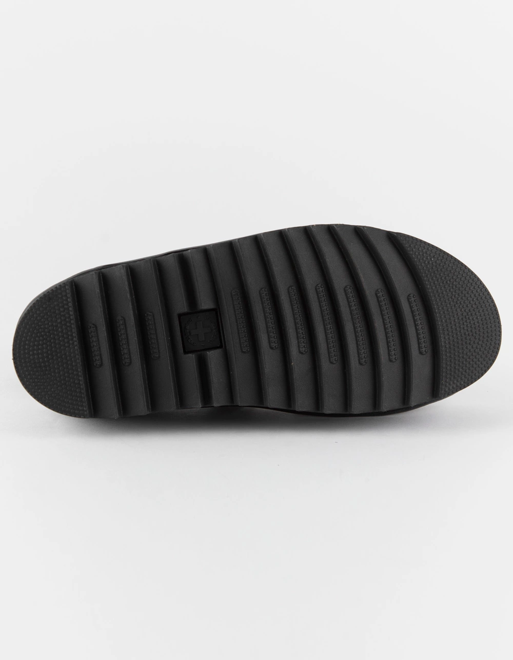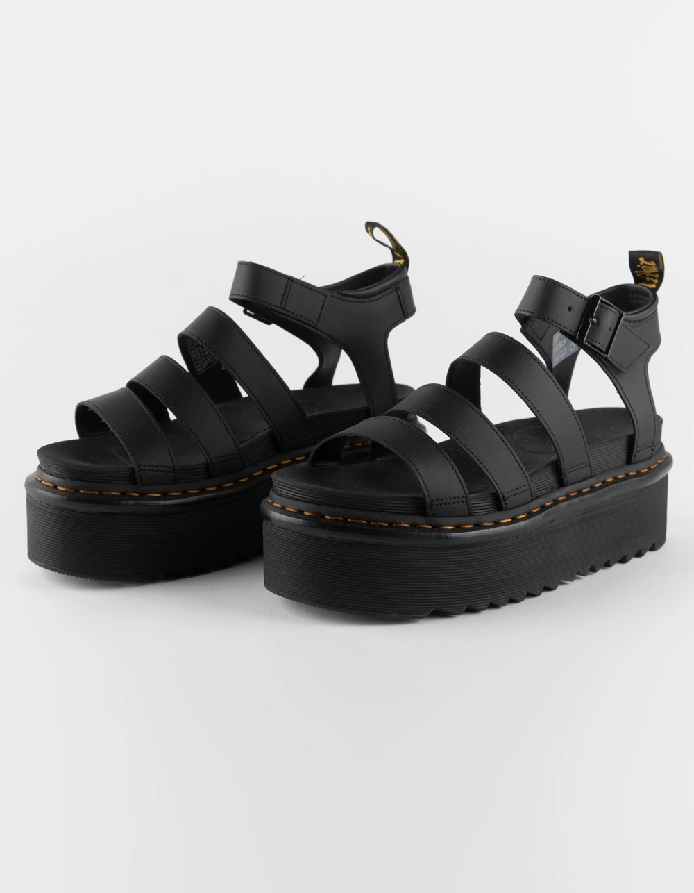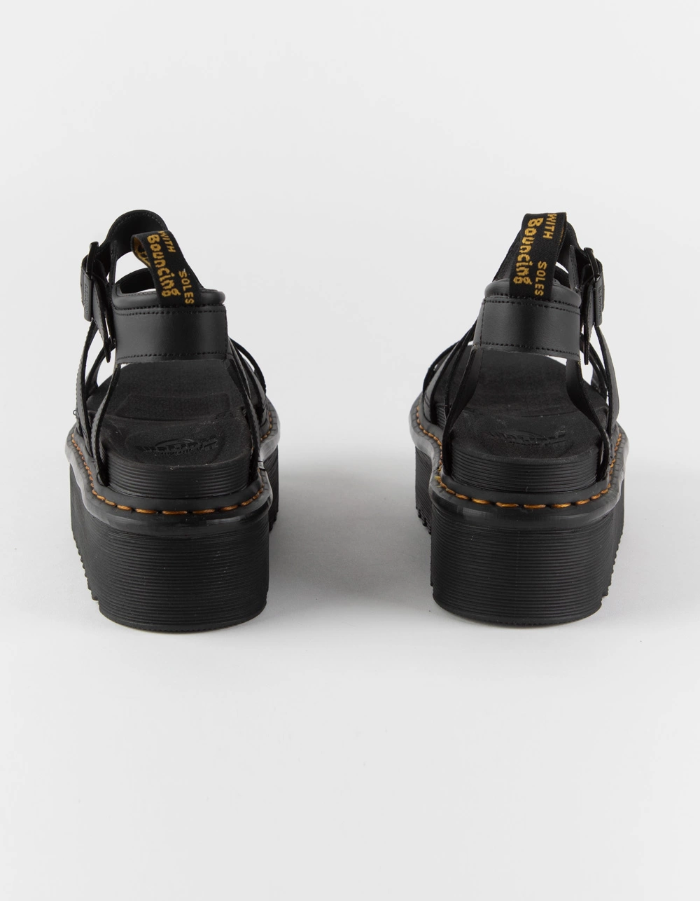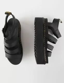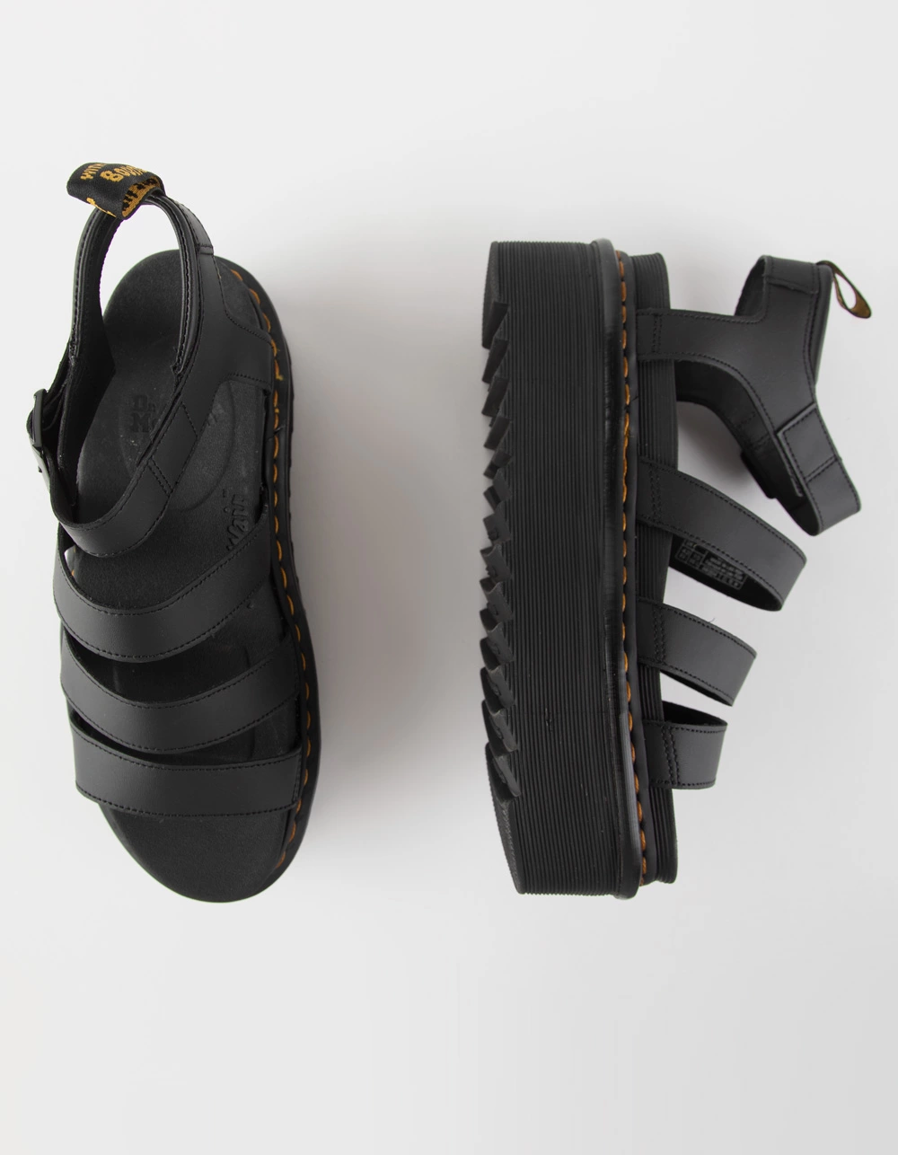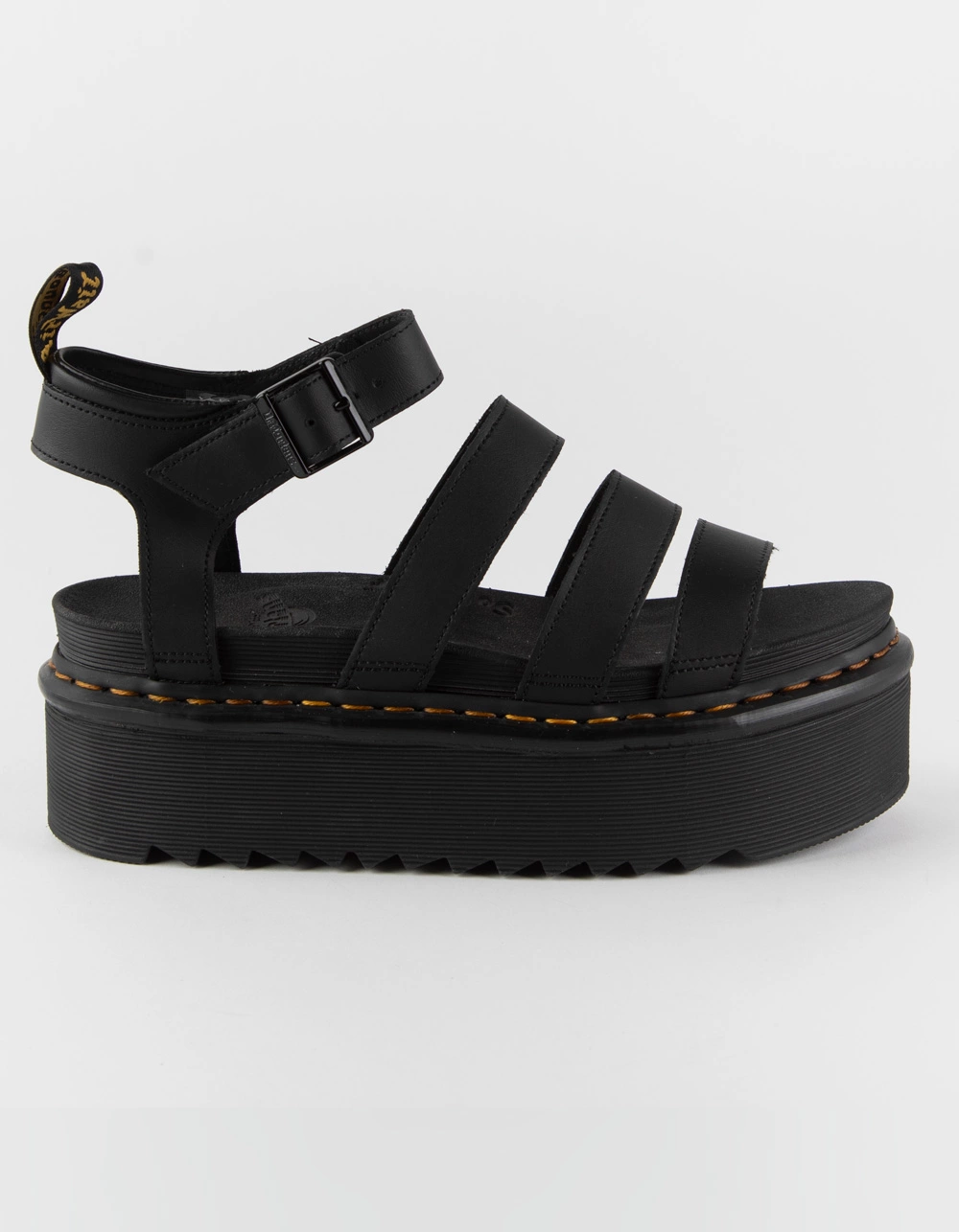 Dr. Martens Blaire Quad Sandals. Our tough sandal built on our tall but lightweight Zebrilus platform sole. A padded collar and SoftWair footbed keep you going all day. Constructed with durable Hydro leather. Marked as DM’s with our iconic yellow stitches and heel loop. Adjustable buckle strap at the ankle. Hydro is a smooth PU-coated leather with a matte finish. Our SoftWair memory foam footbed ensures comfort from the first step. Lightweight platform sole. Platform height: 2 3/8 in; Heel height: 3 in. Imported.