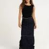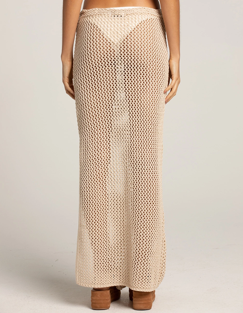 Dress Forum Crochet Maxi Skirt. Crochet knit construction. Adjustable drawstring closure at waist. Left leg side slit. Approx. length: 40”. 100% Acrylic. Hand wash. Imported.