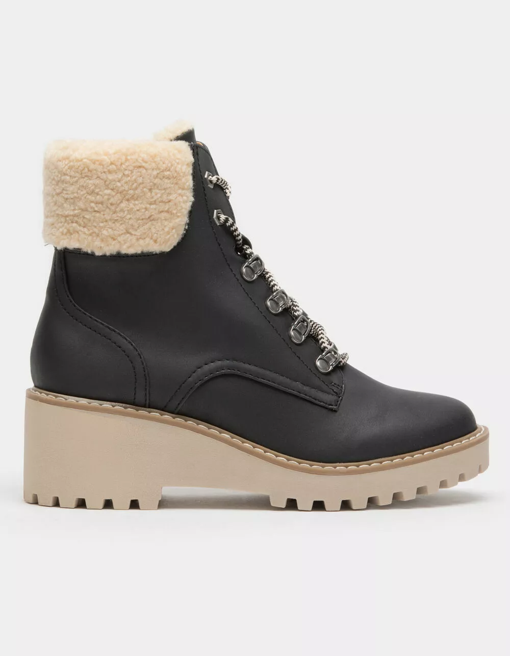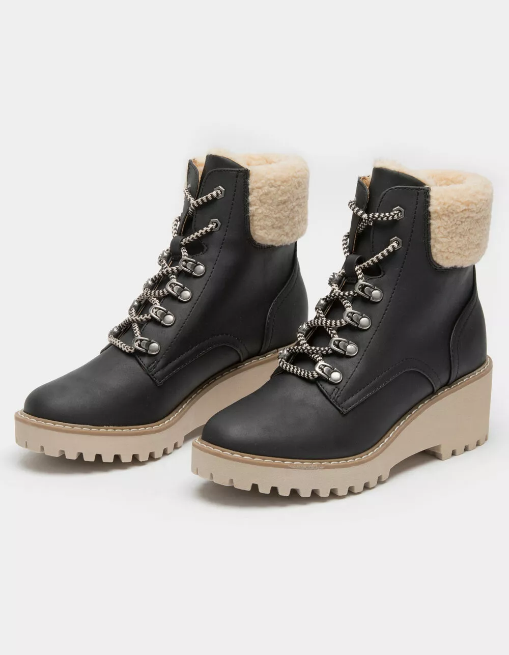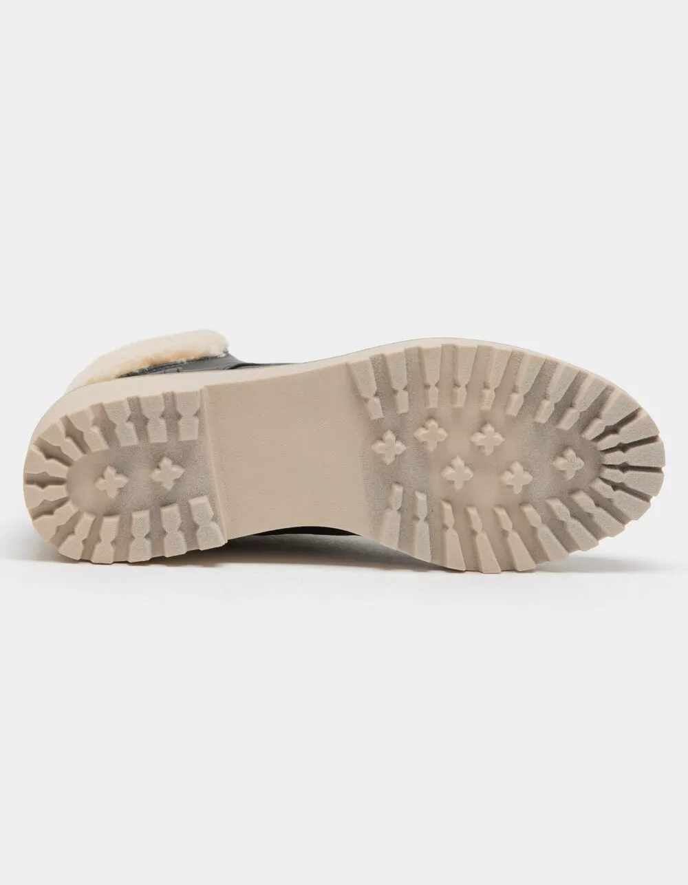 Faux-shearling collar lining. Lug outsole. Cushioned insole. 2.5″ Heel height. Imported.