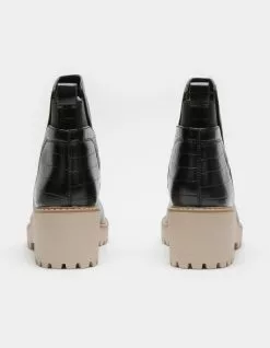 DV By Dolce Vita Rielle Chelsea Wedge Boots. Faux-leather upper in a wedge ankle boot style with a round toe. Elastic gore. Heel tab. Soft lining with cushioned insole. Midsole with contrast stitching. Lug outsole. 2.25″ wedge height. Imported.