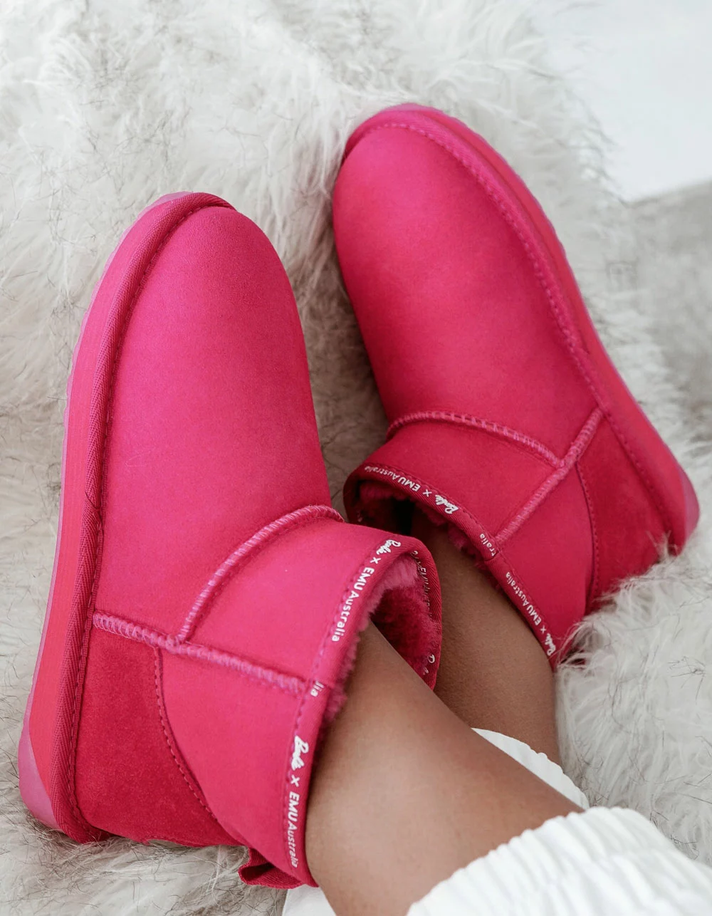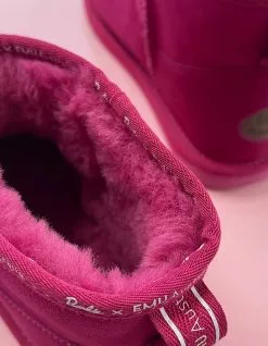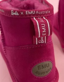 The limited edition Barbie™ Stinger Micro is infused with the iconic pink and the Barbie print binding completes the look. Made to last, this water resistant double face Australian sheepskin boot sits at the ankle for a feminine and flattering fit. Soft and comfortable, they also deliver traction and grip. ©2022 Mattel. In celebration of the Barbie Dreamhouse™️ 60th anniversary, EMU Australia introduces the limited edition Barbie™️ Stinger Micro. Iconic pink infused with the Barbie print binding completes the look. The Barbie Stinger Micro is made from natural double face Australian Sheepskin to offer unbeatable comfort. Australian sheepskin keeps your feet warm in the winter and cool in the summer, meaning you can wear your Barbie Stinger Micro boots all year round. Water resistant treatment protects against spills and stains; the ankle height offers a minimalist look and enduring style. Built on a durable outsole providing support and traction, they also feature memory foam cushioning. Limited edition Barbie™️ x EMU Australia Stinger Micro. Premium water resistant Australian double face sheepskin. Australian sheepskin lined footbed. Sheepskin naturally wicks away moisture leaving footwear odorless and perfectly warm in winter and cool in summer. Molded suede heel cup for comfort and support. Soft EVA midsole for comfort. Durable rubber outsole with wave design for traction and grip.