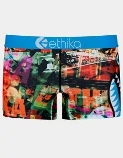Ethika Bomber Rated E Staple Boyshorts. Features thick 1 3/8″ high profile Ethika logo waist band. Soft modal fabric. Low rise. Flatlock tonal stitching. 90% Polyester 10% Spandex. Top and bottom sold separately. Machine wash. Imported.
