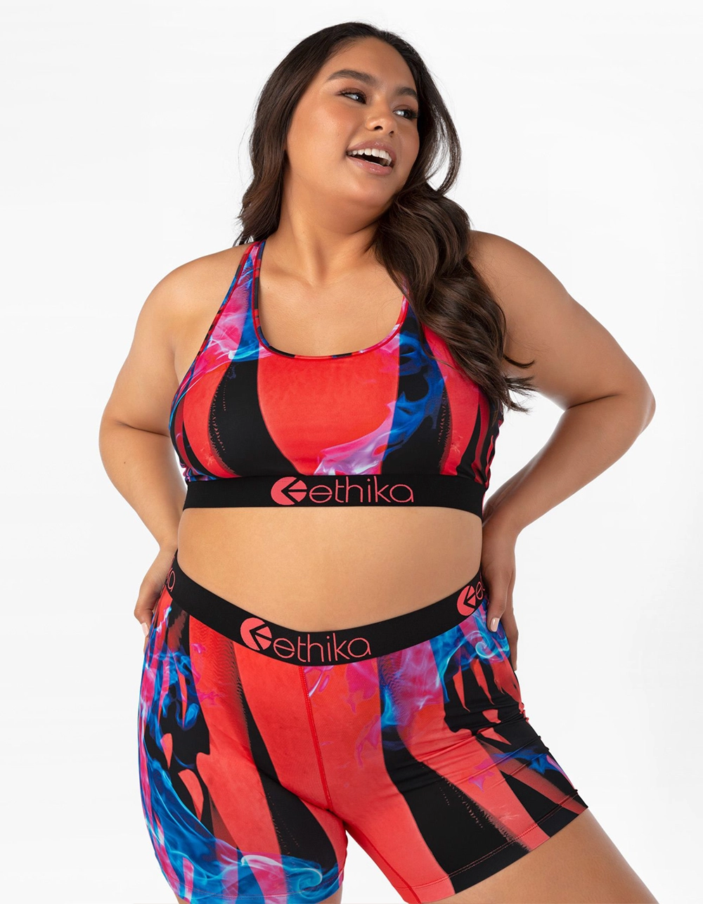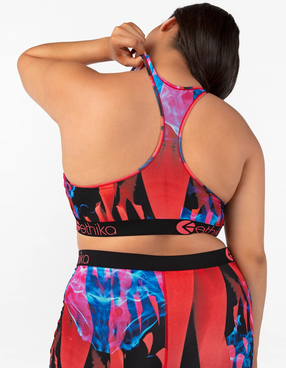 Ethika Fire Starter Sports Bra. Soft modal fabric. Double layered front panel. Racer back straps. High profile 1 3/8″ Ethika logo band. Tonal topstitching. 90% Polyester 10% Spandex. Top and bottom sold separately. Machine wash. Imported.