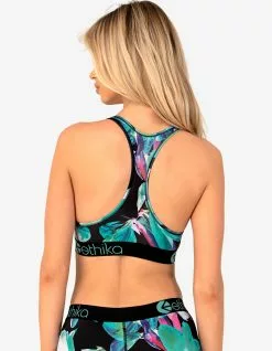 Ethika Glimmer Sports Bra. Soft modal fabric. Double layered front panel. Racer back straps. High profile 1 3/8″ Ethika logo band. Tonal topstitching. 90% Polyester 10% Spandex. Top and bottom sold separately. Machine wash. Imported.