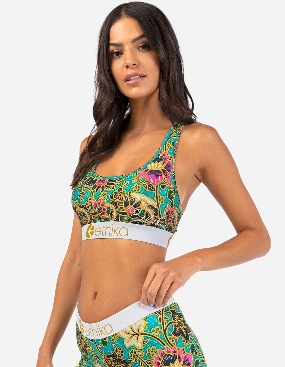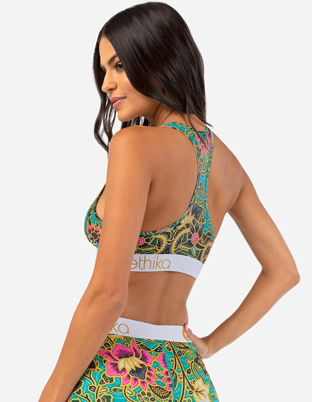 Ethika Sports Bra. Soft modal fabric. Double layered front panel. Racer back straps. High profile 1 3/8″ Ethika logo band. Tonal topstitching. 90% Polyester 10% Spandex. Top and bottom sold separately. Machine wash. Imported.