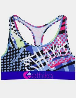 Ethika Lithograph Sports Bra. Soft modal fabric. Double layered front panel. Racer back straps. High profile 1 3/8″ Ethika logo band. Tonal topstitching. 90% Polyester 10% Spandex. Top and bottom sold separately. Machine wash. Imported.