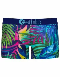 Ethika Paradiso Staple Boyshorts. Features thick 1 3/8″ high profile Ethika logo waist band. Soft modal fabric. Low rise. Flatlock tonal stitching. 90% Polyester 10% Spandex. Top and bottom sold separately. Machine wash. Imported.