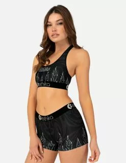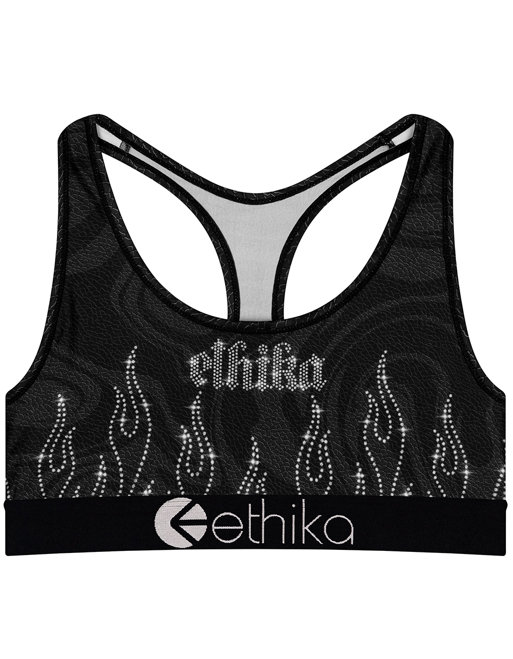 Ethika Twin Flame Sports Bra. Soft modal fabric. Double layered front panel. Racer back straps. High profile 1 3/8″ Ethika logo band. Tonal topstitching. 90% Polyester 10% Spandex. Top and bottom sold separately. Machine wash. Imported.