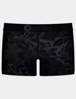 Ethika Uphlstered Staple Boyshorts. Features thick 1 3/8″ high profile Ethika logo waist band. Low rise. Flatlock tonal stitching. 90% Polyester 10% Spandex. Top and bottom sold separately. Machine wash. Imported.