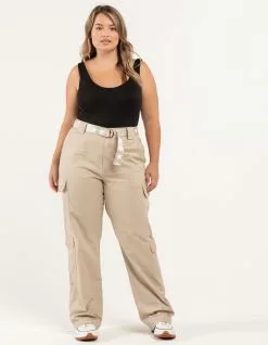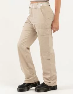 Fivestar General Co. Sierra Cargo Pants. Belt loop waist with branded belt attached. Button closure paired with zipper fly. Slant hand pockets. Welt back pockets. Side cargo pockets. Embroidery on left pocket. Medium wash. Approx inseam: 32″. 100% Cotton. Machine wash. Imported.