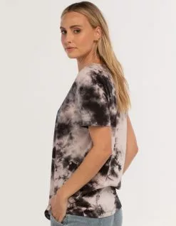Fox Heather Tie Dye Tee. Graphic on front. Tie dye wash. Ribbed crew neckline. Short sleeves. 100% Cotton. Machine wash. Imported.