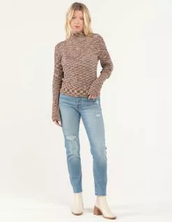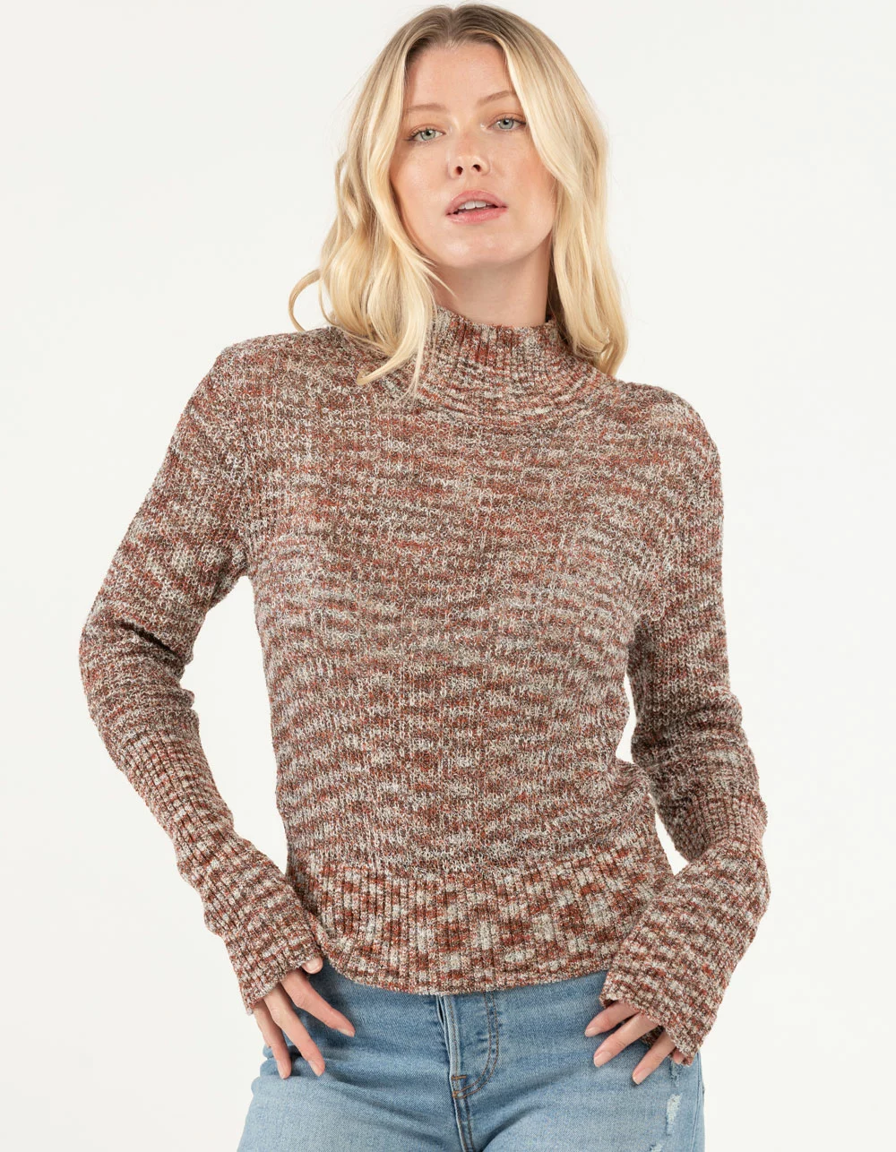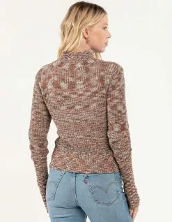 Free People Blair Spacedye Sweater. All over ribbed stretch construction. Spacedye design. Long sleeves. Mock neck. 35% Acrylic 36% Cotton 24% Polyamide 5% Linen. Hand wash. Imported