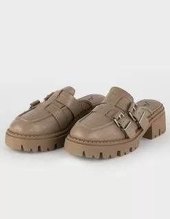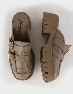 Free People Buckle Lyra Lug Loafers. A classic style gets a makeover with these chunky loafers, featured in a mule style with a lug sole, croc texture, and double-buckle detail. Slip-on style, backless design. Round toe. Leather uppers. Chunky block heel. Lined footbed. Approx. heel height: 2.5”. Imported.