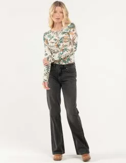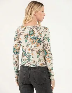 Free People Dreamed Of You Tee. All over pattern. Long sleeves. Lettuce hem and cuffs. Scoop neck. Ruched detail at front. 60% Cotton 40% Polyester. Machine wash. Imported.