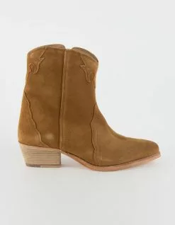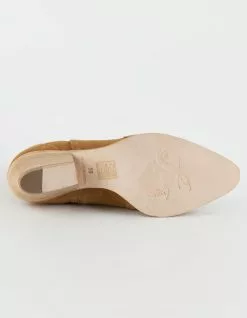 Free People New Frontier Western Boot. Suede ankle boots in a western-inspired silhouette. Featuring a stacked heel and pointed toe. Washed leather outsole. Wide shaft. Pull-on style with side zip closure. Heel: 2 in. Imported.