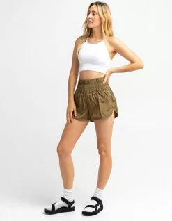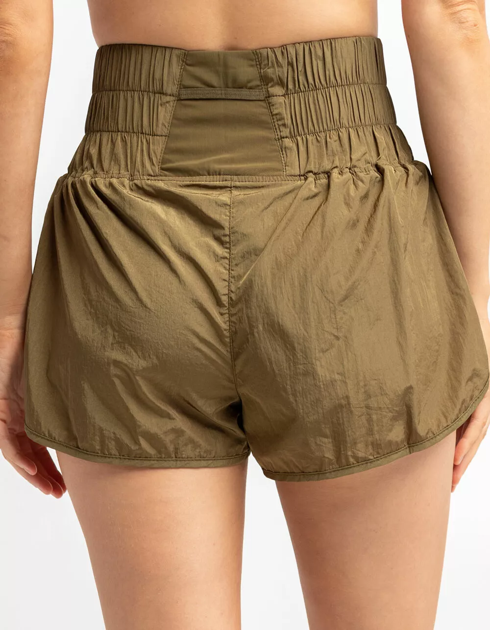 Free People Movement The Way Home Shorts. Speed up or slow down in these breezy, warm-up style running shorts, featuring a boldly smocked waistband with a high-rise silhouette and split hem. Pull-on style. Stretch waistband. Relaxed fit. Inseam: 2″. 100% Nylon. Machine wash. Imported.