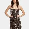 Free People Vernon Mini Dress. Allover floral print. Scoop neckline. Ruched ties on shoulder straps. Shirring at the waist. Built in lining. 33″ length. Shell: 100% Cotton. Lining: 100% Viscose. Machine wash. Imported.