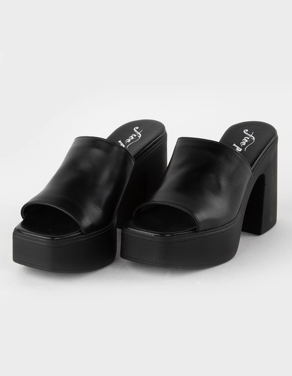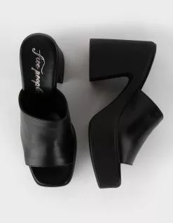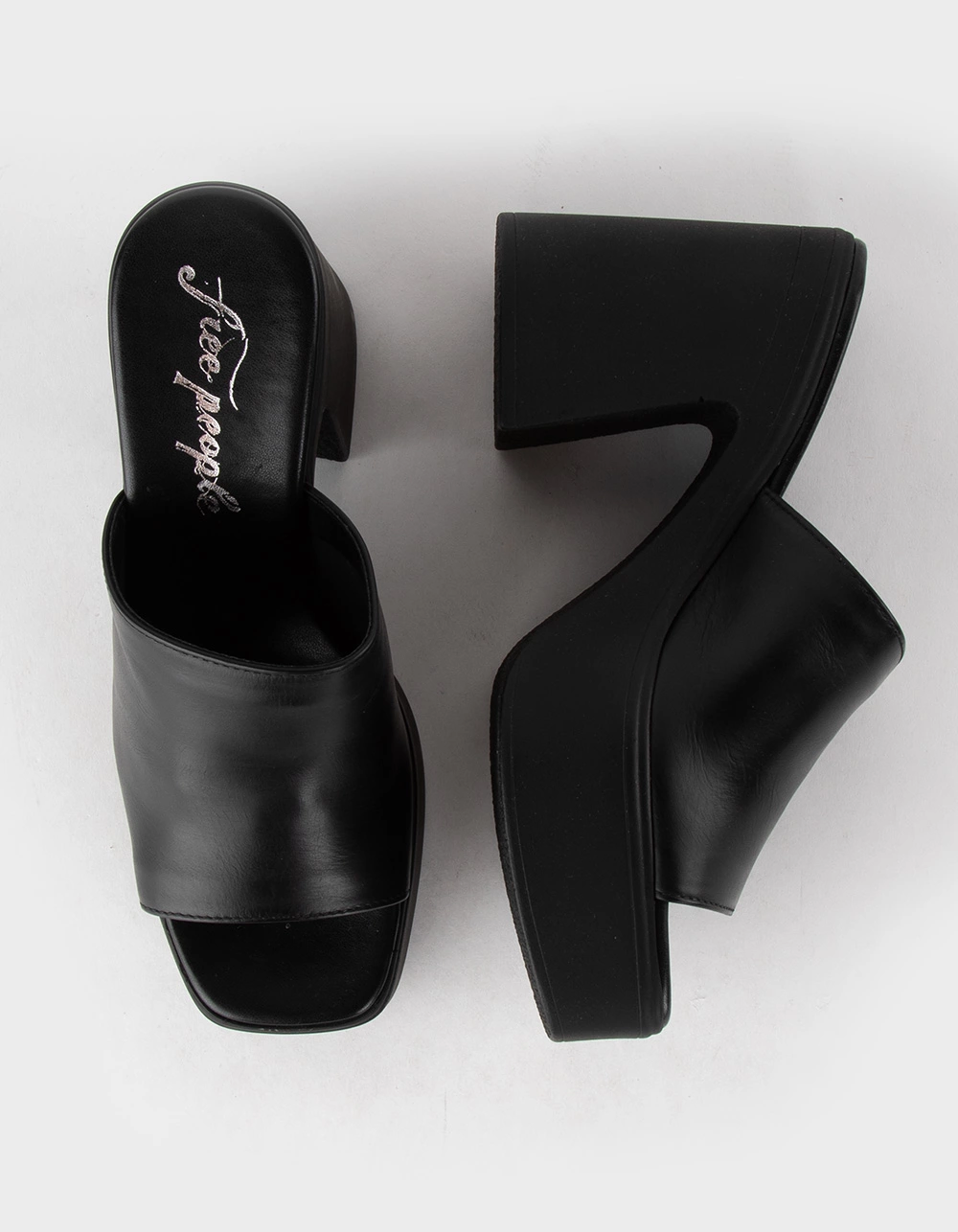 Free People Zoe Platform Sandal. Take a bold step forward in these standout, Italian-made platform sandals featuring a chunky heel and wide leather strap. Slip-on style. Cushioned insole. Sculpted platform. Artisan crafted from fine leathers and premium materials, FP Collection shoes, bags and belts are coveted for their signature vintage aesthetic. Heel: 4.33 in. Made with leather and rubber. Imported.