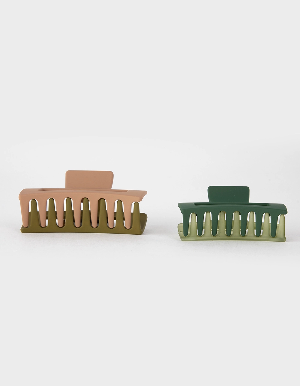 Full Tilt 2 Pack Two Tone Hair Clips. Matte. Sleek plastic claw hair clip. Imported.