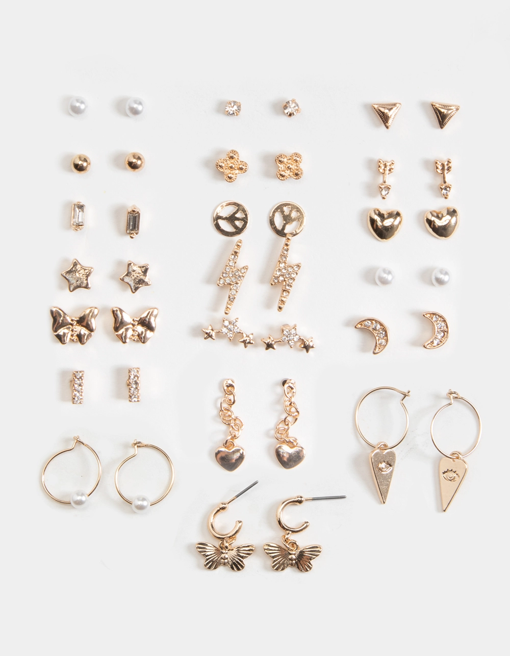 Full Tilt 20 Pack Pearl Heart and Evil Eye Heart Earring Set. Gold toned. Multiple design. Various styles. Imported.