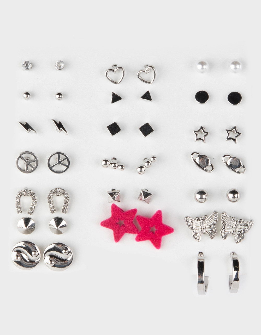 Full Tilt 20 Pack Star & Butterfly Earring Set. Various designed studs. Silver tones. Post back closures. Imported.
