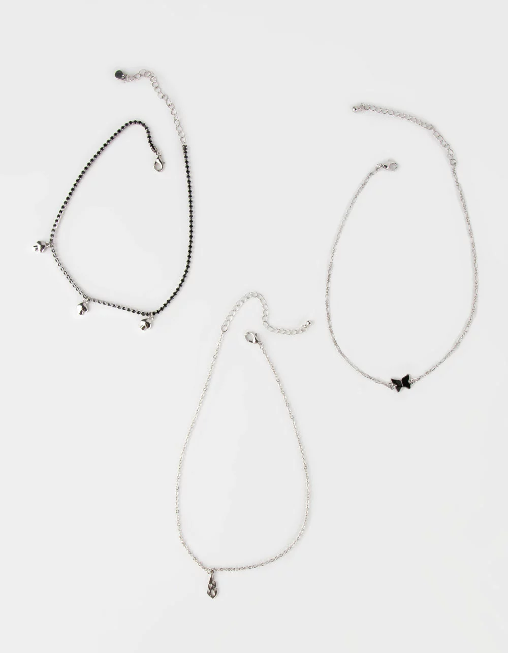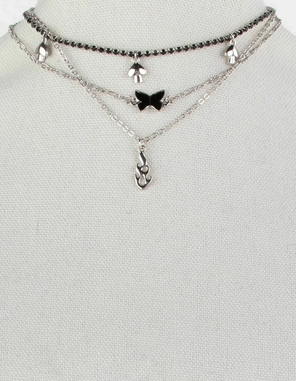 Full Tilt 3 Pack Flame Butterfly Mushroom Choker Necklace Set. Three choker necklaces that can be worn as a set or individually. Necklaces feature flame, butterfly and mushroom pendants. Silver tones. Imported. WARNING PROP 65: This product can expose you to chemicals including lead, which is known to the State of California to cause cancer and birth defects or other reproductive harm. For more information go to www.P65Warnings.ca.gov.