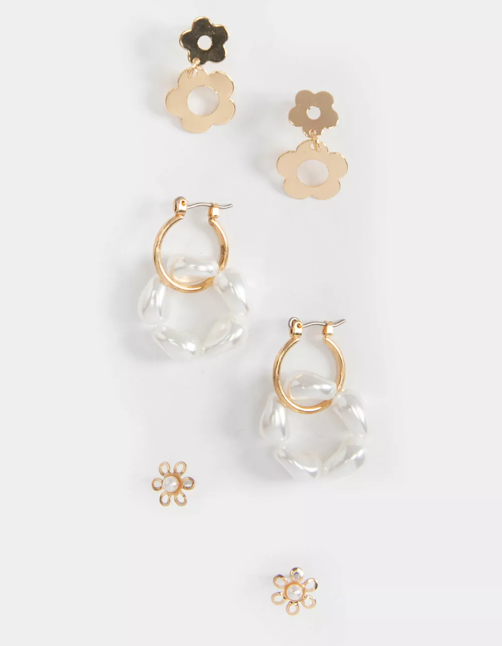 Full Tilt 3 Pack Hoop Floral EarringsSet. Various shapes & charms. Post back closures. Imported