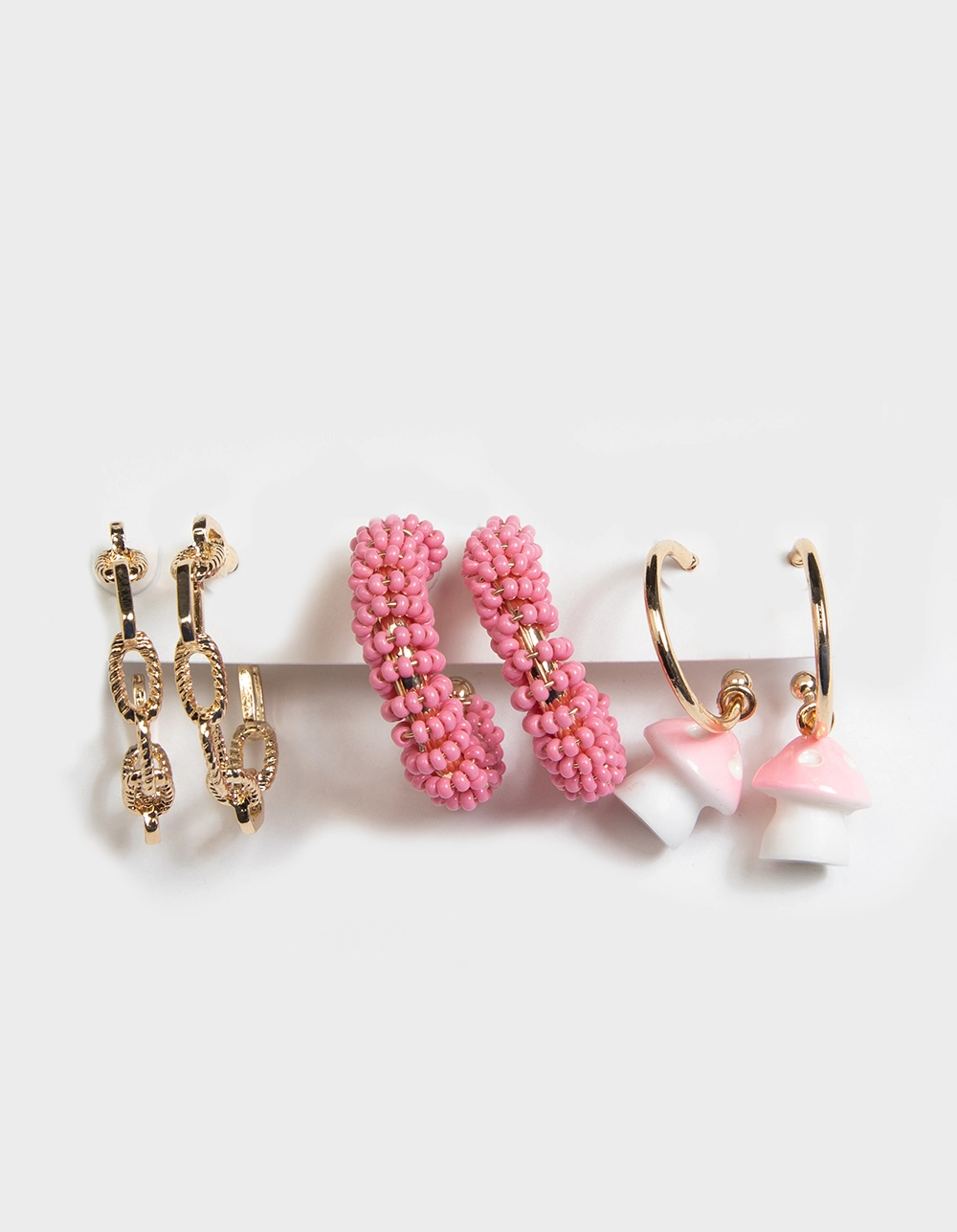 Full Tilt 3 Piece Beaded Mushroom Earring Set. Various designed hoops. Gold tone. Post back closure. Imported. California Residents: https://www.p65warnings.ca.gov/sites/default/files/ws/bw6pt.png WARNING PROP 65: This product can expose you to chemicals including lead, which is known to the State of California to cause cancer and birth defects or other reproductive harm. For more information go to www.P65Warnings.ca.gov.