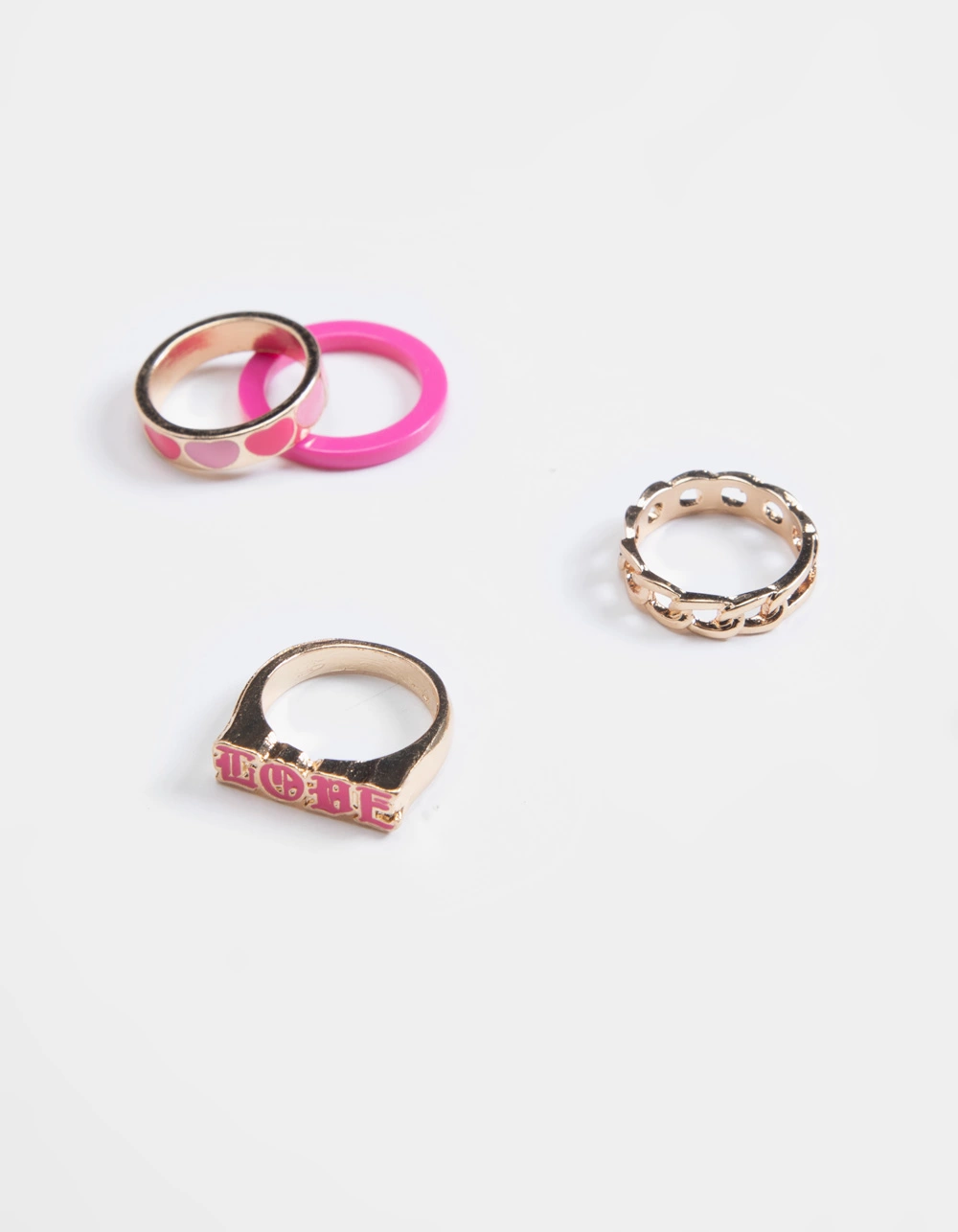 Full Tilt 4 Pack Love Hearts Ring Set. Various sizes and designs. multicolored. Imported.