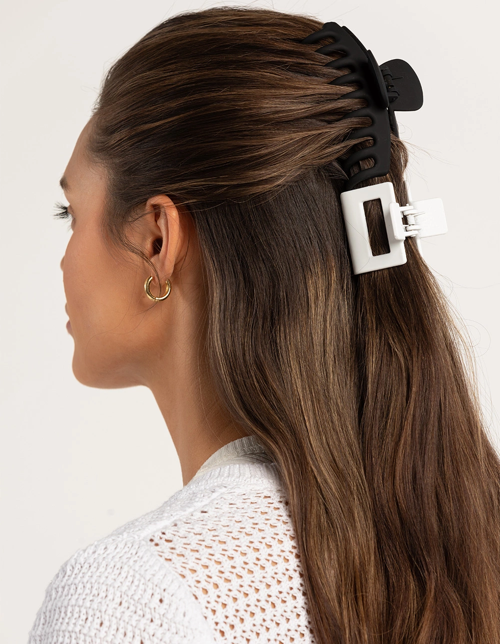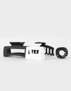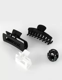 Full Tilt 4 Pack Matte Claw Clip Set. Various shapes and sizes of hair claw clips. Matte finish. Plastic. Imported.