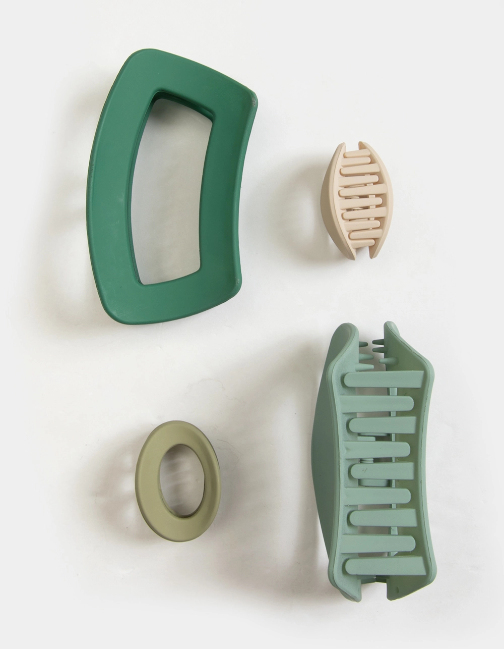 Full Tilt Claw Clip Hair Set. Plastic hair clips. 4 piece. 4 different colors and shapes. Imported.