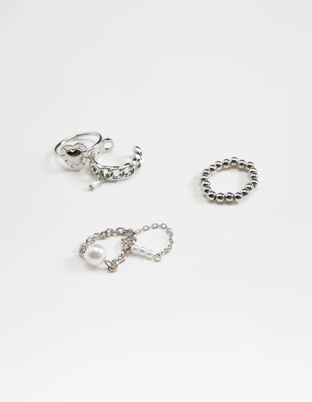 Full Tilt 5 Piece Lock & Chain Peal Ring Set. Silver toned rings. Various designs. Imported.