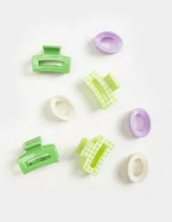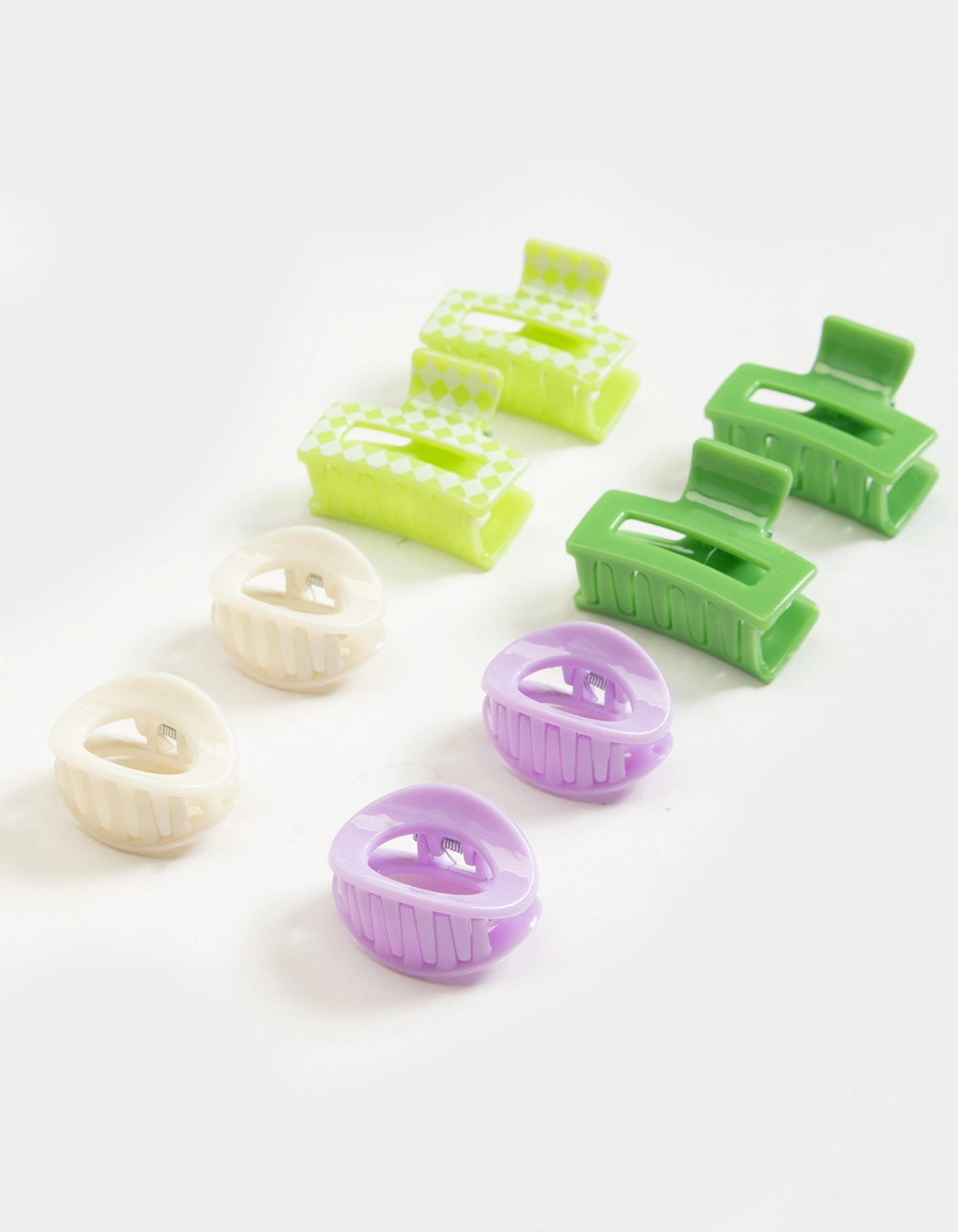 Full Tilt 6 Piece Mini Claw Clip Hair Set. Plastic hair clips. 6 piece. 3 different colors and designs. Imported.