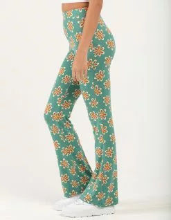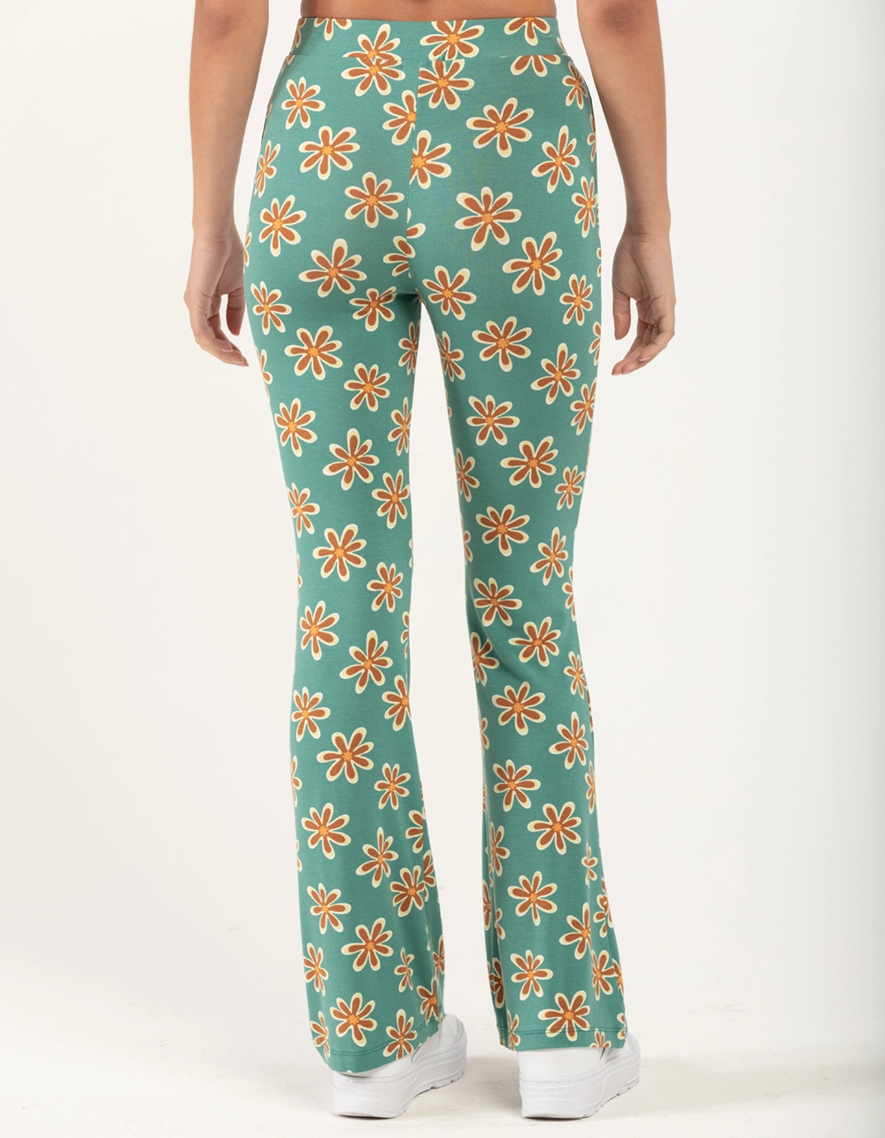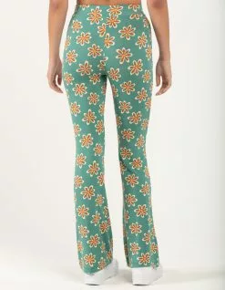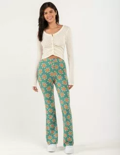 Full Tilt 70s Floral Flared Pants. All over floral print. Elastic waist. Flared fit. Approx. Length: 32″. 95% Rayon 5% Spandex. Machine wash.Imported.