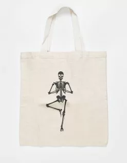 Full Tilt Balanced Skeleton Tote Bag. Skeleton graphic screened on front. Main compartment. Top carry handles. 100% Cotton. Do not wash. Imported.