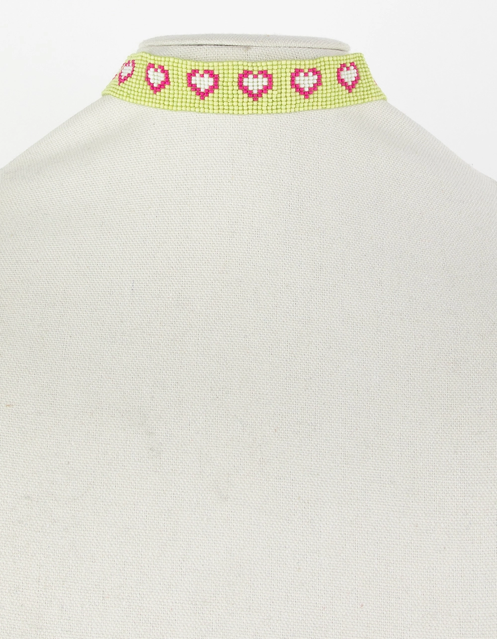 Full Tilt Beaded Heart Choker Necklace. Adjustable beaded choker. Gold toned lobster clasp. Imported.