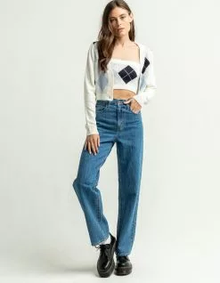Full Tilt Big Argyle Tube Top. Knit tube top with large argyle print across the front. Fitted, crop silhouette. Ribbed neckline and hem. 100% acrylic. Machine wash. Imported.