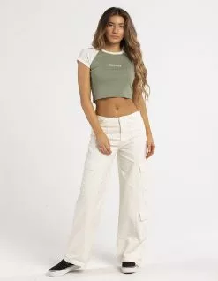 Full Tilt California Embroidered Raglan Tee. California embroidered on center chest. Ribbed crew neckline. Short sleeve. Fitted silhouette. Cropped fit. 50% Cotton, 50% Polyester. Machine wash. Imported.