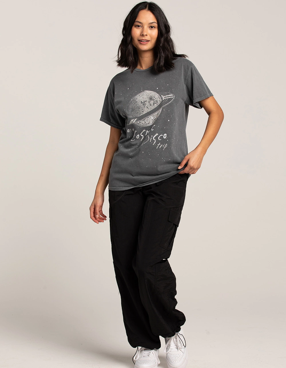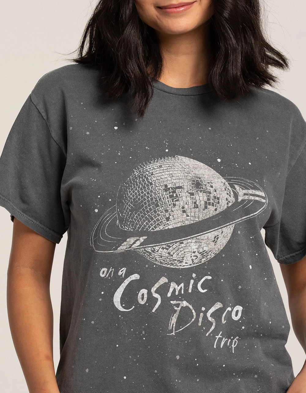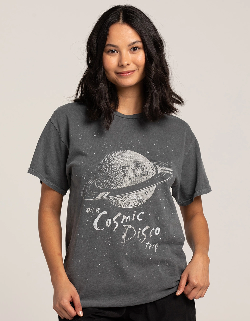 Full Tilt Cosmic Disco Tee. Large graphic screened on front. Ribbed crew neckline. Short sleeve. Loose fit. 100% Cotton. Machine wash. Imported.