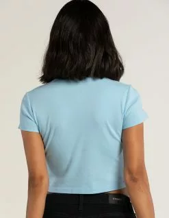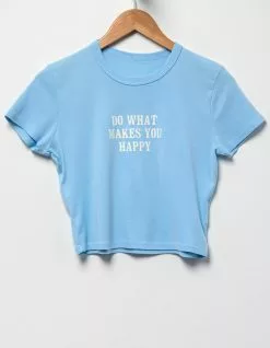 Full Tilt Do What Makes You Happy Baby Tee. Graphic screened on center chest. Ribbed crew neckline. Short sleeve. Cropped fit. 100% Cotton. Machine wash. Imported.
