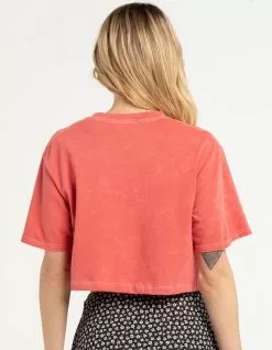 Full Tilt Endless Summer Crop Tee. Large graphic screened on front. Ribbed crew neckline. Short sleeve. Acid wash. Contrast stitching. Loose and boxy fit. Cropped. 100% Cotton. Machine wash. Imported.