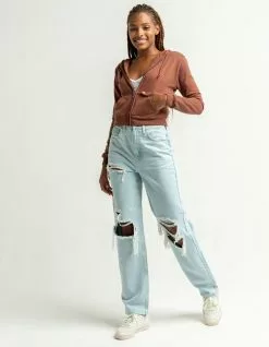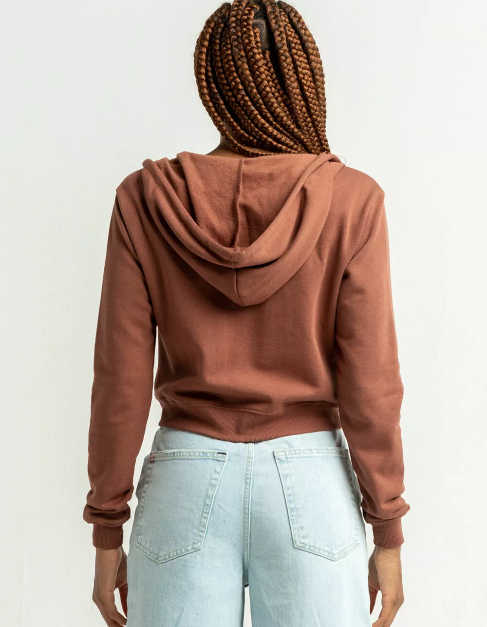 Full Tilt Essential Crop Zip Hoodie. Solid sweatshirt with front zip closure. Drawstring hood. Slant hand pockets. Ribbed cuffs and hem. Fleece lining. Cropped fit. 60% cotton/40% polyester. Machine wash. Imported.