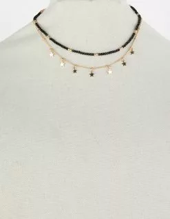 Full Tilt Layered Star Bead Necklace. Chain link necklace with star charms and beaded necklace connected at the clasp to create a layered look. Gold toned. Lobster clasp closure. Imported. California Residents: WARNING PROP 65: This product can expose you to chemicals including lead, which is known to the State of California to cause cancer and birth defects or other reproductive harm. For more information go to www.P65Warnings.ca.gov.