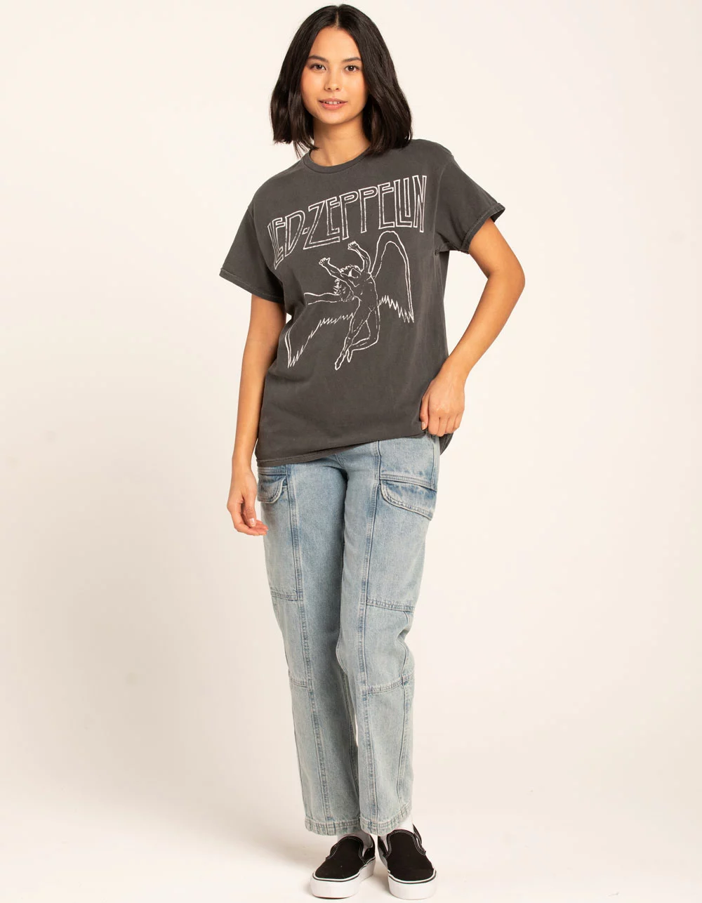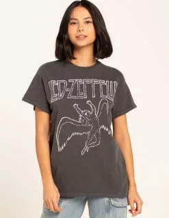 Full Tilt Led Zeppelin Boyfriend Tee. Large graphic on front. Ribbed crew neckline. Short sleeve. Oversized fit. Contrast stitching. 100% Cotton. Machine wash. Imported.