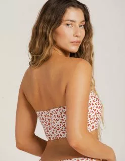Full Tilt Long Bandeau Bikini Top. Allover print. Removable padding. Long Bandeau. Removable adjustable straps. 80% Nylon 20% Spandex. Lining: 100% Polyester. Hand wash. Imported.