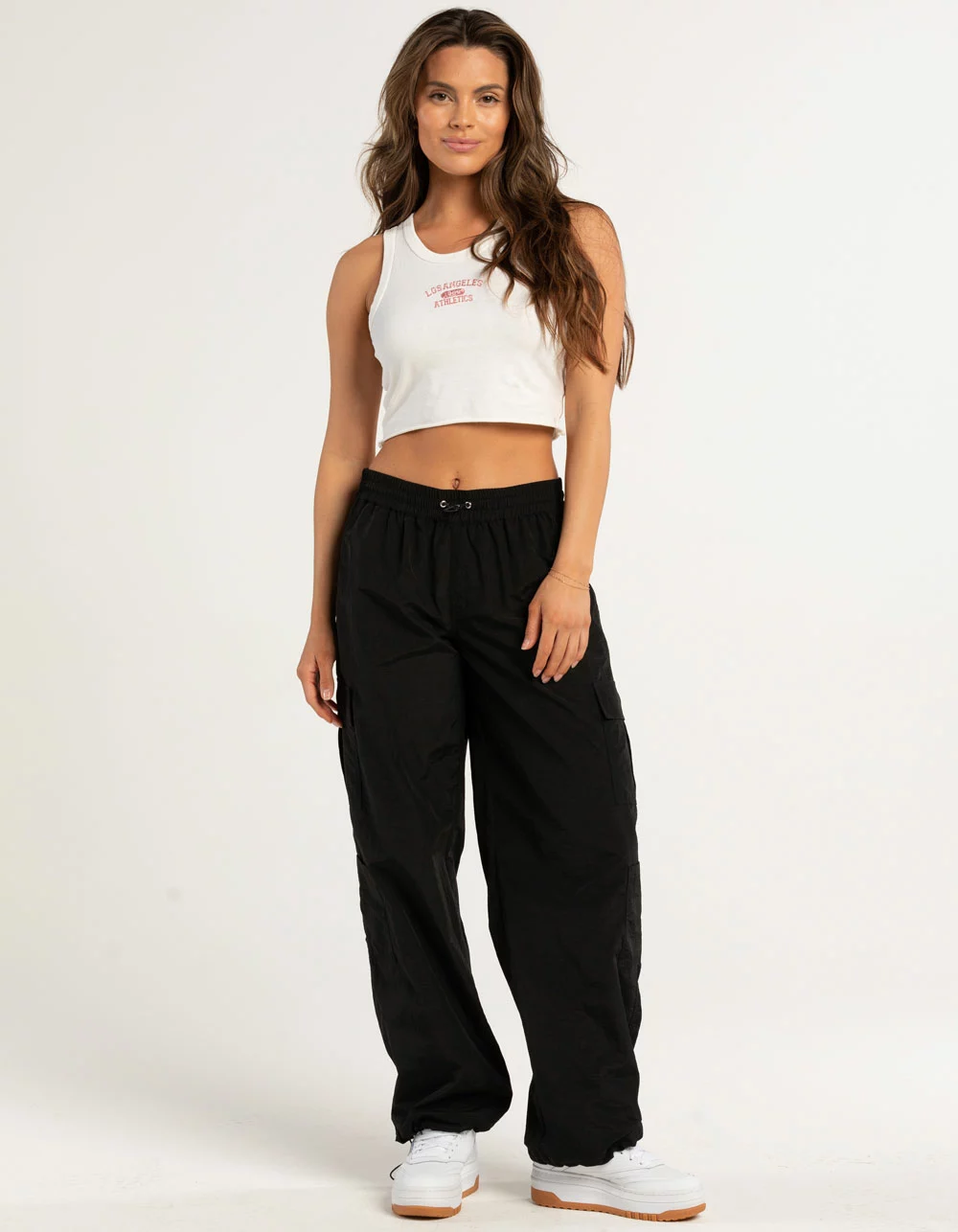 Full Tilt Los Angeles Embroidered Tank Top. Embroidery at center chest. Crewneck. Ribbed trim. Cropped fit. Raw hem. 100% Cotton. Machine wash. Imported.