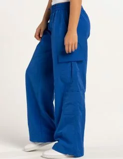 Full Tilt Low Rise Nylon Parachute Cargo Pants. Crinkle nylon fabric. Elastic waistband with adjustable toggle for a custom fit. Slant hand pockets and cargo pockets with snap closures. Baggy fit, straight leg. Adjustable toggles at pant hem. Approx. inseam: 30.5”. 100% Nylon. Hand wash. Imported.