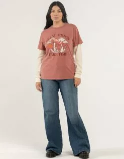 Full Tilt Mushroom 2fer Tee. Graphic on front. Ribbed crew neckline. Long sleeves attached. Thermal knit sleeves. 60% Cotton 40% Polyester. Machine wash. Imported.