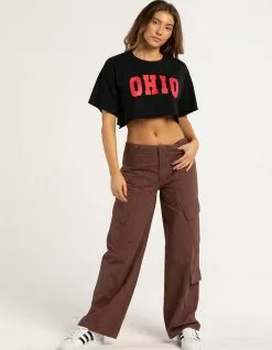 Full Tilt Ohio Crop Tee. Ohio Screened across center chest. Ribbed crew neckline. Short sleeve. Raw edge hem. Boxy and cropped fit. 100% Cotton. Machine wash. Imported.