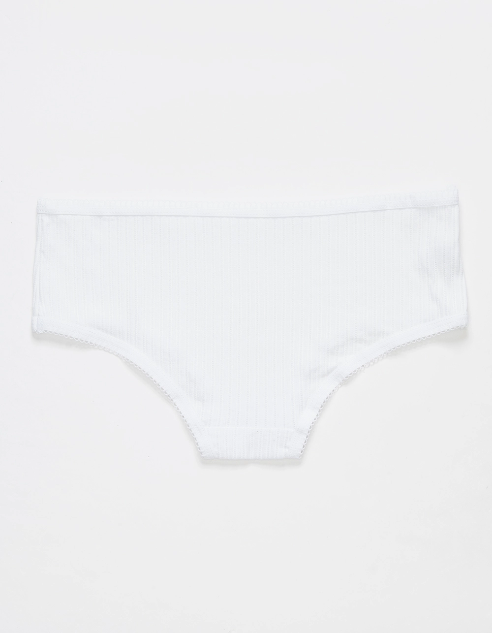 Full Tilt Picot Trim Hipster Panties. Ribbed fabrication. Picot trim. Cotton gusset. 46% Rayon, 46% Cotton, 8% Spandex. Hand wash. Imported.